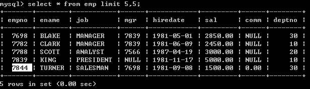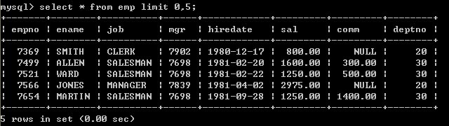 LIMIT用来限定查询结果的起始行,以及总行数。