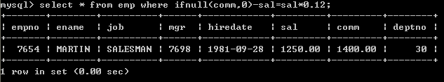 comm列有很多记录的值为NULL,因为任何东西与NULL相加结果还是NULL,所以结算结果可能会出现NULL。下面使用了把NULL转换成数值0的函数IFNULL: