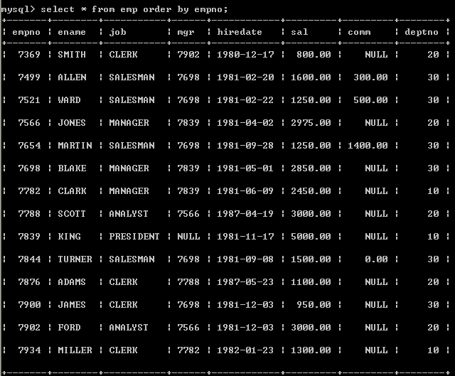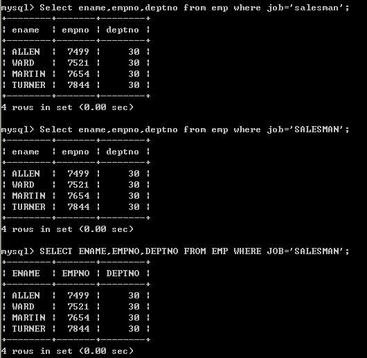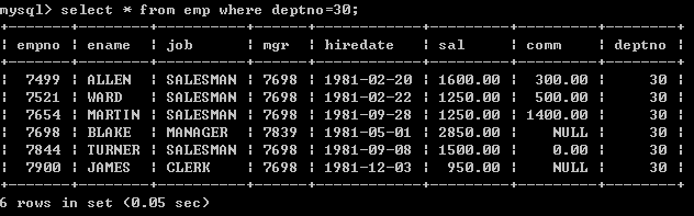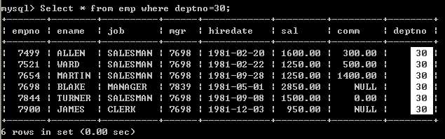 | 例如:查询出部门编号为30的所有员工