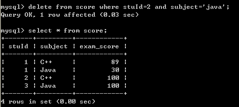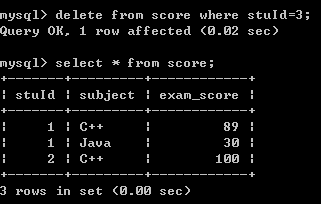 二十三,删除学号为2的学生的Java成绩
