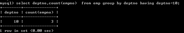 我想查询一下10号部门共几个员工?(分组+聚合函数)