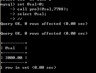 调用存储过程,传入7788,定义系统变量@sal,用来存储返回值,然后用select打印出来