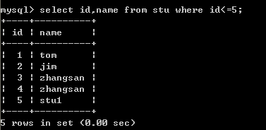 二十九、查询小于5号(包括5号)学生的学号和姓名信息(2列)