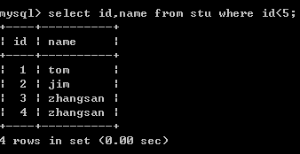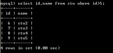 二十八、查询小于5号(不包括5号)学生的学号和姓名信息(2列)