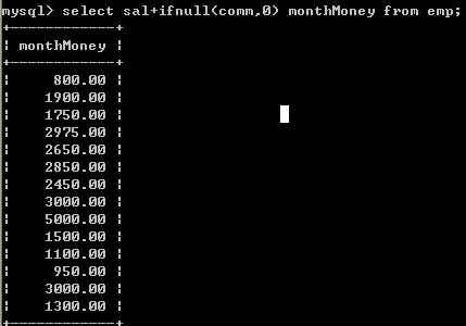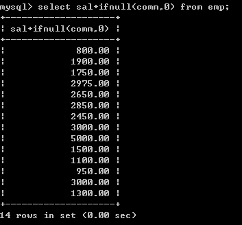 SELECT *,sal+IFNULL(comm,0) FROM emp;