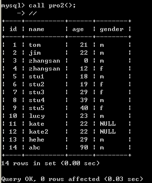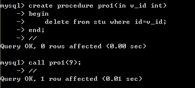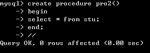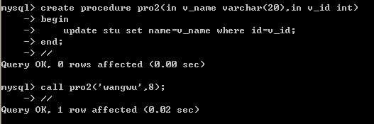 | create procedure pro2() begin declare v_id int; set v_id=12; select * from stu where id=v_id; end;