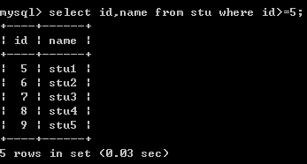 二十七、查询5号学生的学号和姓名信息(2列)