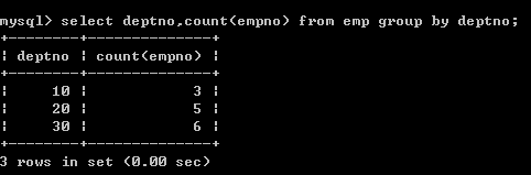 我想查询一下每个部门共几个员工?(分组+聚合函数)