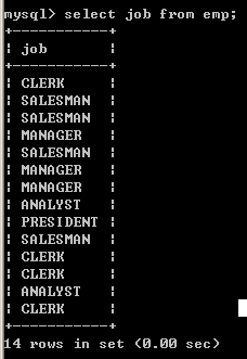 只查询emp表中的job列