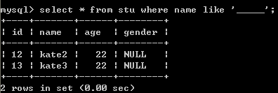 查询姓名由5个字母构成,并且第5个字母为“i”的学生记录