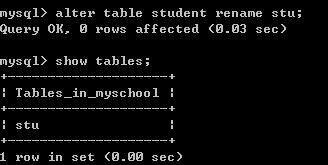 十五、修改表名由student变为stu