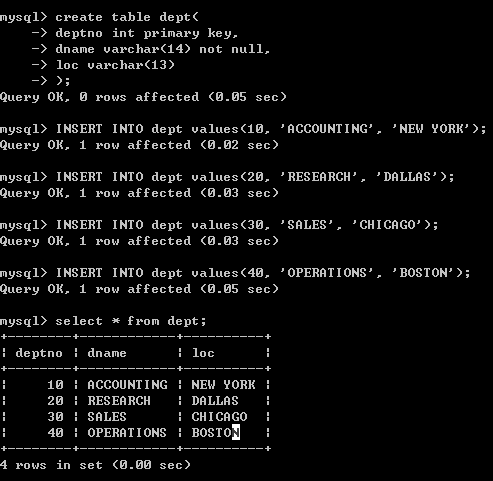 创建部门表dept