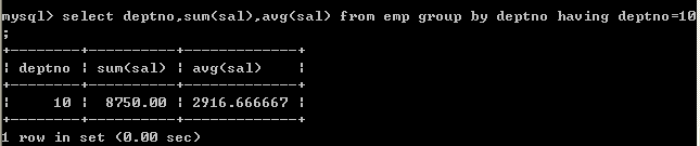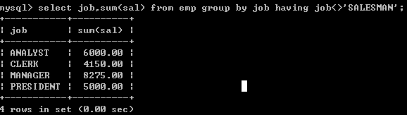 分组后若要再加条件(过滤),就不能使用where,而要使用having(即group by后面不能出现where,只能出现having)