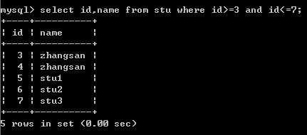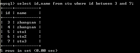 三十一查询大于3号(包括3号)且小于7(包含7号)学生的学号和姓名信息(2列)用between....and