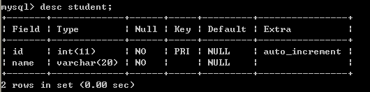 七、查看student表结构