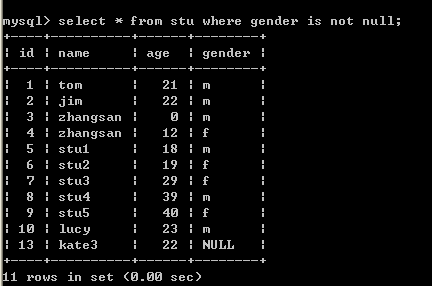 查询学生表中性别不为null的信息