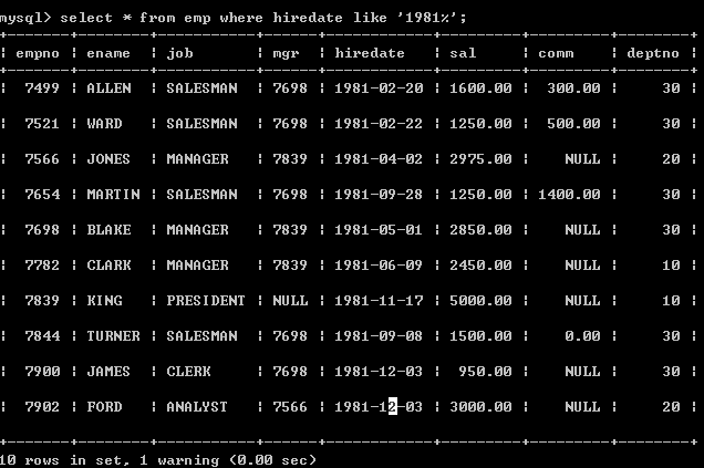 查询1981年入职的员工。