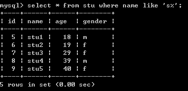 查询姓名是以”s”开头的学生信息
