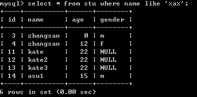 查询姓名中包含“a”字母的学生记录