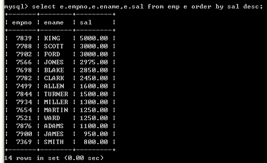 查询所有员工记录,按sal降序排序