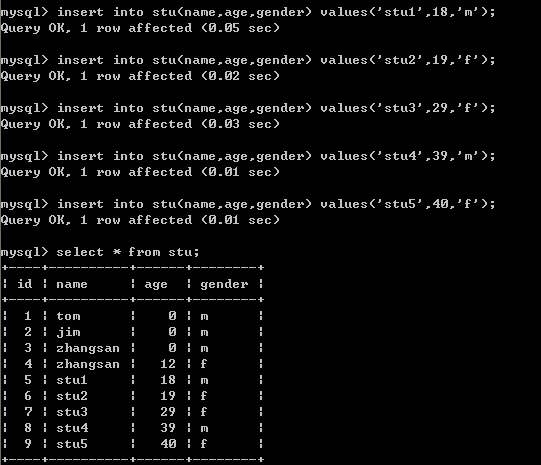 二十四、为了测试的需要,再给学生表添加5条数据