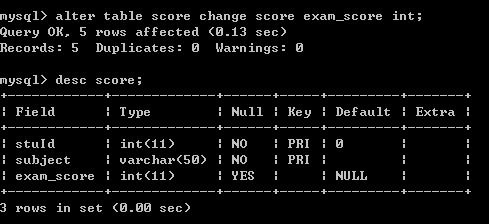二十一、为了不重名,我们修改score表中的score列名为exam_score