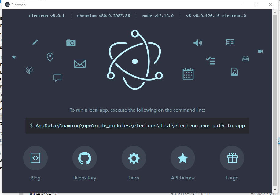下载链接:https://cdn.npm.taobao.org/dist/electron/8.0.1/electron-v8.0.1-win32-x64.zip V8.0.1 win版本 其他版本自行下载