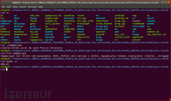 提取成功之后,我们就可以开始分析固件的更新过程了,并确定解密固件的方法。幸运的是,快速浏览文件系统后,我们在/bin目录中找到了一个貌似有戏的代码文件“imgdecrypt”。