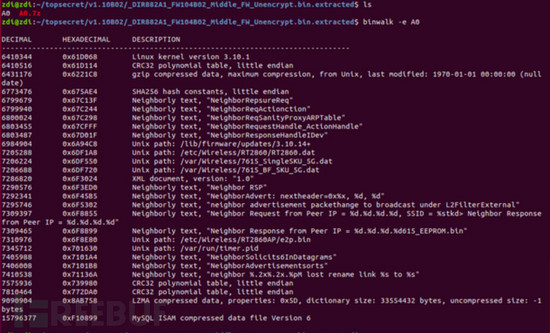 我们可以看到,binwalk成功检测到了解密固件中的不同区域。