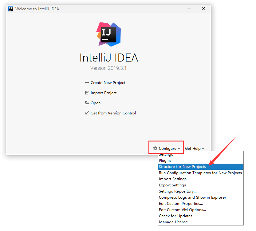 在欢迎界面选择【Configure】 - 【Structure for New Projects】