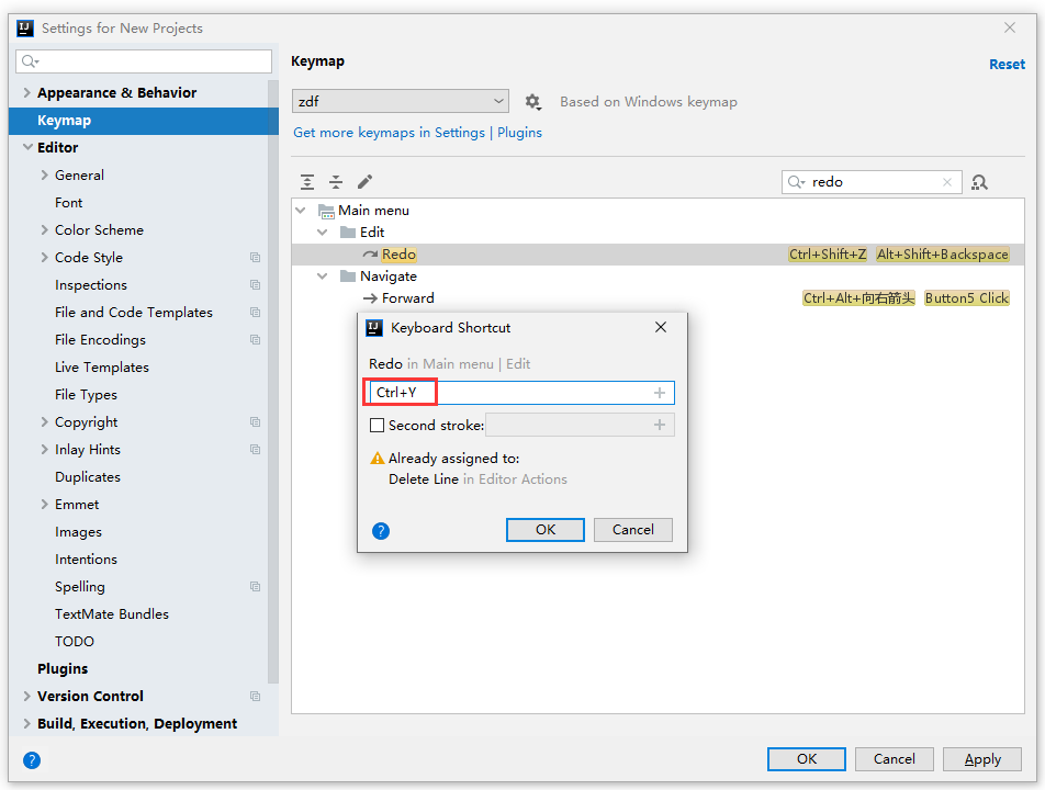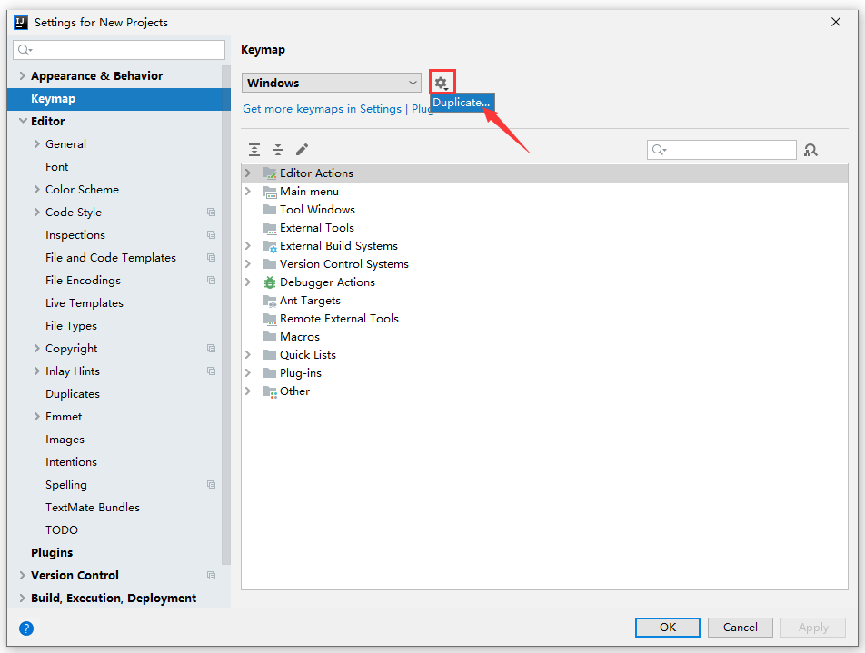 选择左侧菜单【Keymap】,在右侧面板中,复制一份当前快捷键配置