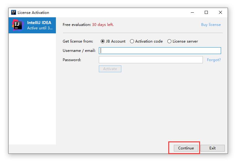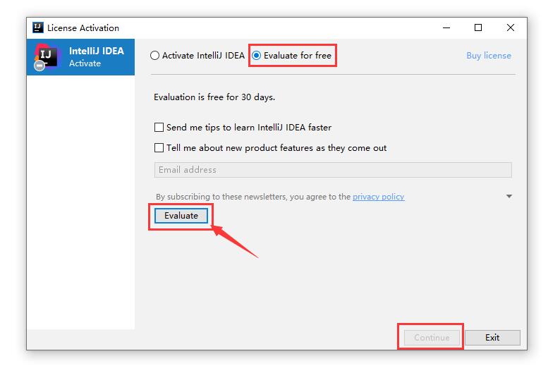 到了让人沮丧的购买授权界面,我们先选择免费试用 Evaluate for free , 然后点击 Evaluate 按钮: