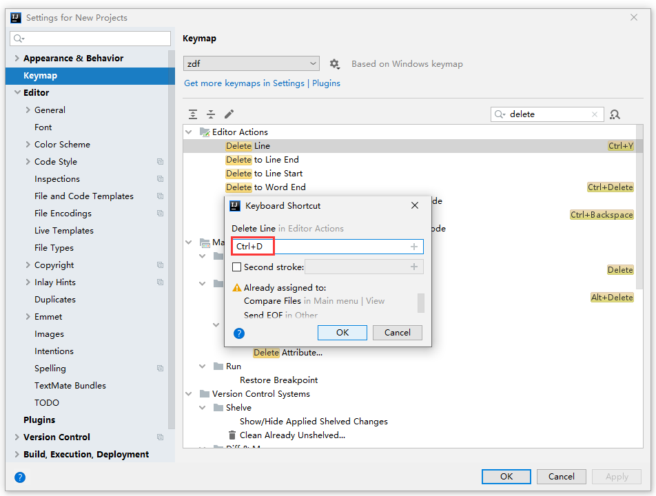 按住键盘上的 Ctrl 键不放,再按下 D。IDEA会识别出你的设置,然后点击 OK 按钮保存设置。