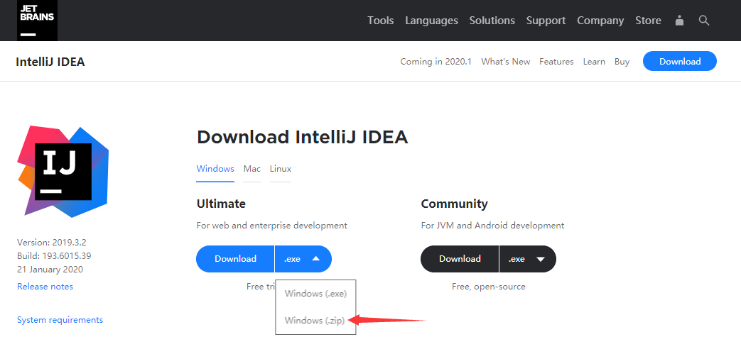 我们可以从官网下载最新的安装包,这里同样推荐大家下载zip文件。旗舰版要比社区版功能强大,但两者的安装、配置基本没有区别。我们就以旗舰版的安装、配置为例了。(旗舰版可以免费试用30天,更多优惠信息可查阅官网)