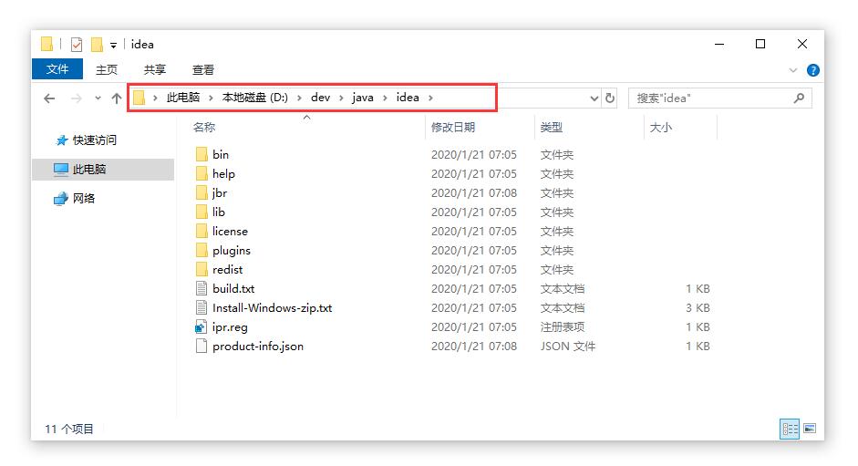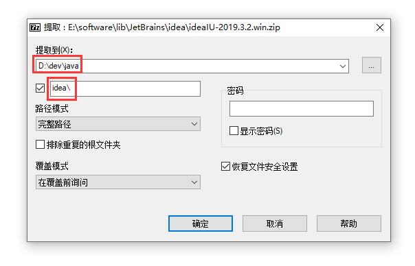 现在我们将下载好的压缩包(如:ideaIU-2019.3.2.win.zip)解压到:D:\dev\java\idea 目录。使用7zip可以参考:
