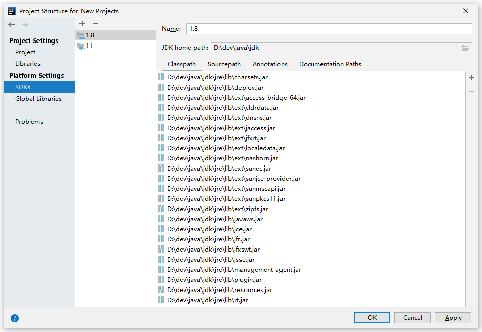 最新的 IDEA 已经自带了 Java 11 运行时环境(JBR),不过还是建议大家单独安装Oracle JDK。关于JDK的安装可以查阅我上一篇文章:《Java开发环境配置之安装JDK》。