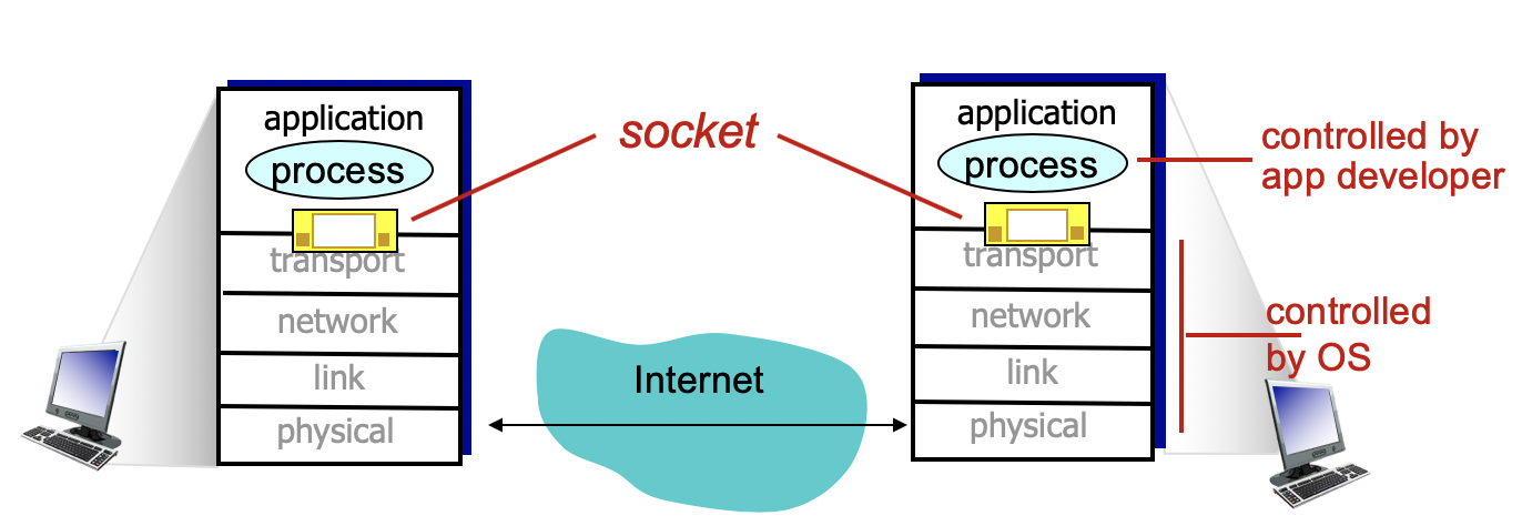 进程间通信的规则:由端系统(主机)上的操作系统确定。