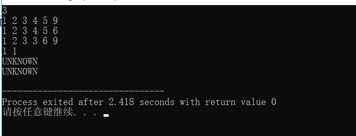 若对应的测试数据存在唯一的解,并且解正整数解,则输出两个