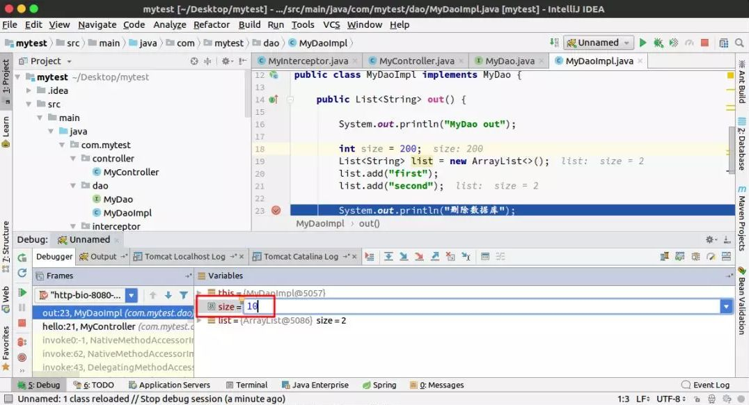 可以实时的知道代码运行中的变量的值,甚至改变变量的值,从此不用再使用System.out.println()去打印代码变量了.