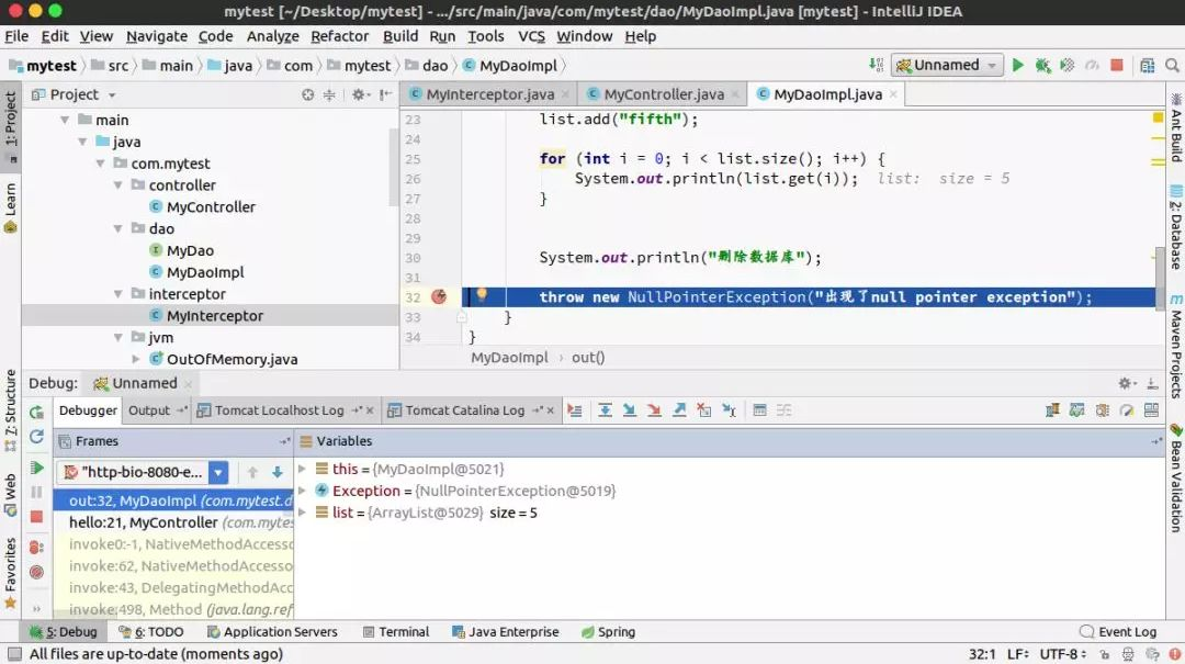 当出现空指针异常时,会自动跳到抛出空指针异常的行数,省的我们再去定位问题点在哪,非常方便。