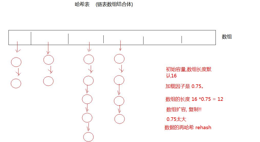 在图的左边是一个数组,数组的每个成员包括一个指针,指向一个链表的头,根据元素的特征将元素分配到不同的链表中去,我们也是根据这些特征,找到正确的链表,再从链表中找到正确的元素。