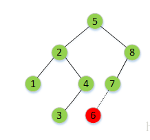 如上图,如果插入6这一元素, 则8的左子树深度就为2, 右子树深度就为0,绝对值就为2, 就不是一个平衡二叉树。