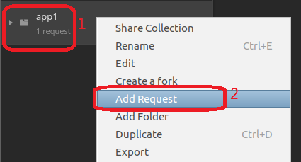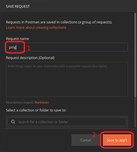 Request name 填写 “ping”,然后点击”Save to app1”按钮