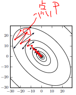 红色为SGD+Momentum。黑色为SGD。可以看到黑色为典型Hessian矩阵病态的情况,相当于大幅度的徘徊着向最低点前进。而由于动量积攒了历史的梯度,如点P前一刻的梯度与当前的梯度方向几乎相反。因此原本在P点原本要大幅徘徊的梯度,主要受到前一时刻的影响,而导致在当前时刻的梯度幅度减小。
