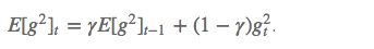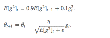 对 Adagrad 的改进,和 Adagrad 相比,就是分母的 G 换成了过去的梯度平方的衰减平均值,指数衰减平均值。