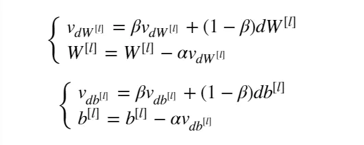v['dW' + str(l+1)] = beta * v['dW' + str(l+1)] + (1-beta)* grads['dW' + str(l+1)]