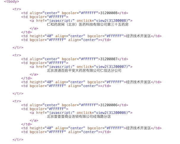 页面搜索功能有限,我就做了一个爬虫,思路分了两步,先找药店名称的编号,再查药店的具体地址。