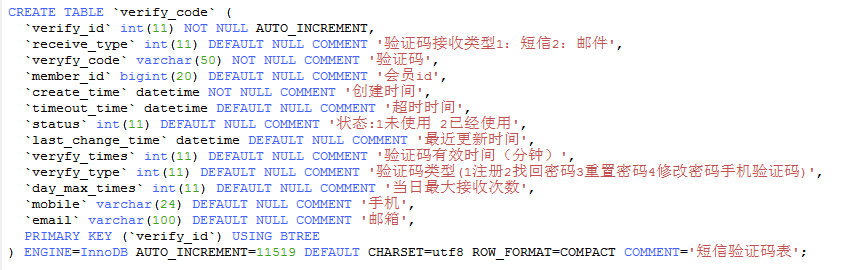 数据库创建一个存储基于短信或邮箱验证码的表,用于存储信息。