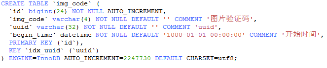 数据库建一个存储验证码的表,img_code,它的字段包括: