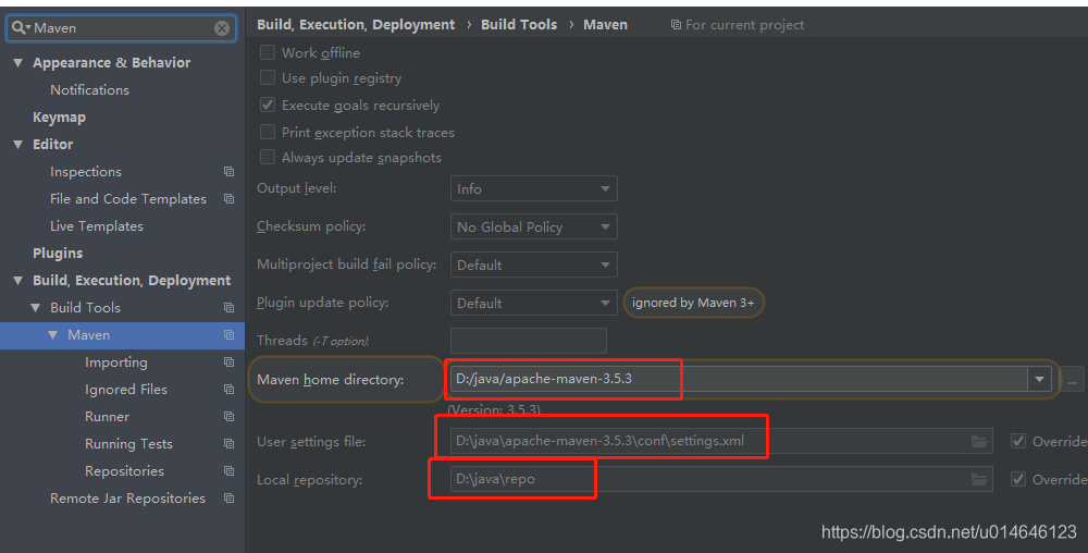 3.配置一下仓库,保持一致,File-->Settings如下图4,搜索Maven,并配置与原来idea一致,如下图5选中部分